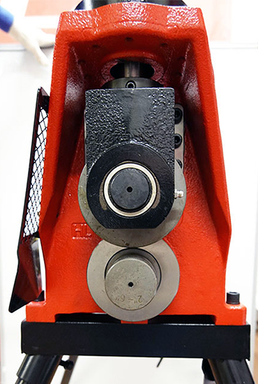 Удобство в работе: Конструкция станка продумана до мелочей. Регулируемая опора надежно фиксирует трубы любой длины, а орган управления глубиной накатки расположен на прочной станине для точности и контроля.